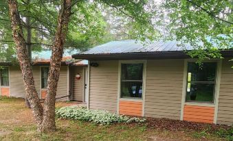 Does the cabin have air conditioning? - No, but the cement foundation and shaded tree cover keep the home naturally cool.About pets:Pets allowed: dogs (limit 2 total).About checkOut:Check out before 11:00 AM.About children:Children allowed: ages 0-17.About checkIn:Check in after 4:00 PM.About smoking:Smoking is not permitted.About minBookingAge:Minimum age to rent: 18.About events:No events allowed.