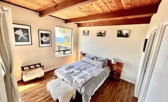 Seaward Bliss faces stunning expansive blue and white-water views of the Pacific Ocean. This dog-friendly 2 Bedroom (4 adults / 5 if you BYO-bedding) Sea Ranch home has a beautifully furnished open floor plan with full kitchen, dining areas that includes entertainment (stereo, TV, Wi-Fi). Private office off Primary Bedroom. Hot Desk off of Guest Bedroom. Personal 10 min walk to beach. Hot tub overlooking ocean. Enjoy shared pool and tennis at one of three nearby rec centers.