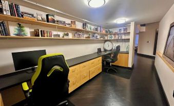 The space is a perfect blend of entertainment and comfort. A massive 90-inch HDTV, complemented by an immersive Sonos Sound System, stands ready for movie nights. The kitchen boasts a Viking professional stove for culinary enthusiasts, while heated bathroom floors add a layer of luxury. A spare 24-inch monitor caters to your connectivity and productivity needs.