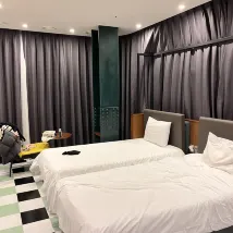 Bathroom were without shower curtains hence the floor was always wet after each shower. Housekeeping crew were polite and obliging.