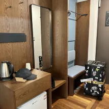 The rooms are large enough, modern, the air conditioning is great, you can't hear it, but it works. Soundproofing is good, including the windows. There is a kettle tea coffee.