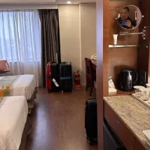 Standing : Un hôtel étoilé traditionnel et rigoureux. L'espace est suffisant pour ranger deux grandes valises et deux valises. L'espace est bien utilisé. Ce n'est pas un problème de mettre quelques valises supplémentaires ou d'ouvrir deux grandes valises en même temps. Le réfrigérateur est livré avec deux bouteilles gratuites chaque jour : eau d'Evian et deux bouteilles de Perrier (version coréenne), séparation eau et sec dans la salle de bain et toilettes intelligentes. Il y a une machine à glace dans le couloir à l'étage. Un coup d'œil à la réception vous dira que vous devez entreposer vos bagages. Il y a une réception chinoise. La pièce a une bonne insonorisation et est très calme.