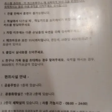 N'allez surtout pas dans cet hôtel ! C'est d'une saleté repoussante. Les couvertures sont visiblement usées et jaunies. J'ai pris une photo, et mon téléphone a l'air tout sale. Les toilettes sont communes, et la porte ne ferme même pas correctement. Le lavabo de la salle de bain n'a pas de bonde, l'eau coule donc directement sur les pieds. Les chambres sont de simples cloisons en bois ; on se croirait à la rue. C'est absolument répugnant. Si vous cherchez un hôtel près du centre-ville, vous en trouverez de très propres et corrects autour de 250 bahts à Myeongdong. N'allez surtout pas dans cet hôtel ; c'est tellement sale que les mots me manquent pour décrire à quel point c'est immonde.