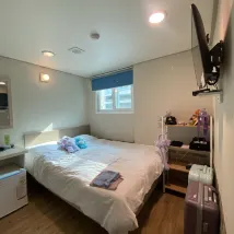 Nous sommes restés un total de 6 nuits, en réservant 2 chambres. Les 3 premières nuits étaient une chambre avec fenêtre, les 3 dernières nuits étaient une autre chambre sans fenêtre. Mais l'hôtel a été très gentil et nous a permis de dormir dans la même chambre sans avoir à changer de chambre. L'intérieur de la chambre d'hôtel est mignon, propre et tout l'équipement de base est fourni. La télévision peut être bien visionnée, le Wifi est effectivement très bon, très pratique à utiliser. Nous sommes restés avec nos 2 filles et nous nous sommes sentis très en sécurité ici. Les sympathiques gardiens sont toujours disponibles pour demander, saluer et conseiller sur ce qui est nécessaire et peuvent être contactés à tout moment. Ce qui est important, c'est que l'emplacement de l'hôtel est très pratique pour se promener. Nous avons marché plusieurs fois pour trouver quelque chose de délicieux à manger au marché de Kwang Jang. Chaque attraction touristique recommandée était proche de notre hôtel, nous avons tous marché. L'hôtel est très proche de la gare, sortie numéro 7. Je pense que si l'on compte depuis la sortie, la distance n'est probablement qu'à environ 100 mètres. L'espace commun dispose de tous les équipements. Je me sentais vraiment à la hauteur du prix payé. La prochaine fois, si je reviens à Séoul, j'ai l'intention de revenir ici 🥰🥰🥰