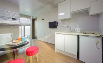 Room size was good, but there was no lift in the hostel. The staff was so nice who helped me to take the luggage to the room. It’s clean. Space was enough to open two medium size luggage in the same time. Hair dryer, microwave, kitchen with sink and induction cooker were in the each of the room so we did not need to share with others.