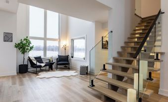 La gare la plus proche est Gravenhurst Train Station, qui se trouve à environ 31,2km de l'hôtel soit à peu près 22 min en voiture..Y a-t-il une gare à proximité de Modern Luxury Retreat with Stunning Views & Open Concept Design ?