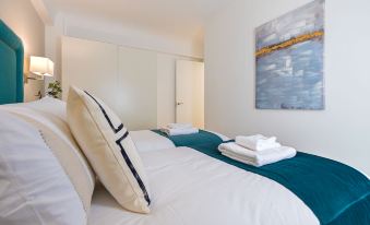 Located on the second floor of a building with an elevator, this bright apartment offers natural light in every room. The spacious living room is furnished with high-quality pieces and includes a double sofa bed (1.40 x 1.90 m). The modern, open-plan kitchen is fully equipped for your stay.