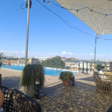 La chambre est très bien insonorisée. Sur la terrasse au quatrième étage de l'hôtel, vous pourrez écouter de la musique, nager, bronzer, manger et profiter d'une vue dégagée. C'est très agréable de s'asseoir sur le terrain, de discuter et de prendre un repas.