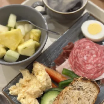 Le petit déjeuner est basique mais suffisant. Probablement à cause de la proximité de la gare, il est servi dès 6h30.