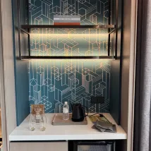Installations : Les installations sont très complètes et peuvent répondre pleinement aux besoins des voyages d'affaires. La chambre est équipée d'un sèche-cheveux, d'un fer et d'une planche à repasser et d'autres petits appareils électroménagers de première nécessité, notamment des peignoirs, des pantoufles, des tasses à thé, des tasses à café, etc. sont également fournis et sont de haute qualité. Il y a de nombreuses prises dans la pièce, il n'y a donc pas de restrictions régionales sur l'utilisation des téléphones portables et des appareils électriques ; la disposition de l'éclairage est riche en couches, dont la plupart sont visibles sans lumière, ce qui est relativement chaud. interrupteurs et interrupteurs d'éclairage de loisirs à un bouton. Il y a des lampadaires et des lits à côté du canapé. La tête est équipée d'une veilleuse et d'une lampe de lecture. Il devrait y avoir une salle de sport et une salle de yoga au deuxième étage, mais malheureusement je n'ai pas eu le temps d'en faire l'expérience cette fois.