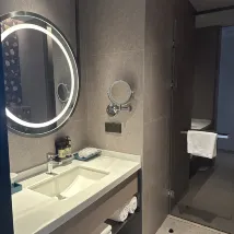 Hygiène : L'aspect général est propre et hygiénique. La salle de bain est conçue avec trois séparations. Il y a un lavabo juste à l'entrée de la pièce, et du savon parfumé pour les mains et de la lotion pour le corps sont fournis. Les toilettes et la douche dans la salle de bain sont séparées. , il n'y aura donc pas d'humidité partout ; la zone de douche s'écoule rapidement. J'ai vu des petits moustiques le soir de mon arrivée. Je ne sais pas si c'était à cause du temps chaud.