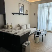 Je suis venu à Shanghai pour promener mon bébé et j'ai réservé cet hôtel. Le style français est génial. La palette de couleurs noir et blanc est géniale. J'adore les pantoufles noires. Une chambre et un salon ont un réfrigérateur, un lave-linge, un four et un salon. micro-ondes. L'emplacement est très pratique pour aller n'importe où dans le centre-ville. Le service de Vicky est super bon au premier étage. Les gars sont également très enthousiastes et le service est excellent. Bien que l'hôtel ne dispose pas de restaurant, il propose du café. de la boulangerie à côté et vous aidera à le livrer dans la chambre. La chambre avec terrasse a une belle vue Même si vous restez à l'hôtel toute la journée, elle est très confortable.