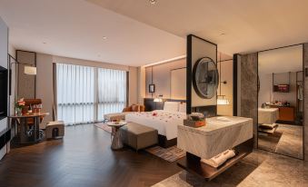 The hotel is the first domestic MINI luxury hotel complex brand under the Kaigao Group. Meiyi Hotel is located at No. 2028 Jinbi Road, Fengxian District, Shanghai, which borders Fengxian District and Minhang District. It is 100 meters away from Shanghai Jinhui Tianjie Commercial Plaza. The first floor of the hotel is equipped with a lobby bar, the first to third floors are equipped with a large boutique restaurant ------ Liangzao Courtyard, the fourth floor is equipped with a boutique SPA and spa center ------ Tianyuan Yi Pinfengxian Shop, and the fifth to eighth floors are equipped with hotel rooms. The hotel is also equipped with gym, laundry room, meeting room, luxury clubhouse and other advanced facilities. The hotel offers daily premium buffet service, butler service, conference services, recreational services, as well as personalized services for VIP guests. 400 meters away from the hotel, there is a shopping mall, barbershops, pharmacies, restaurants, supermarkets, fruit shops, etc. With a diameter of 3.8km, there is Chunzhi Cultural Museum admission fee of 299 yuan; 4.5km, Shanghai Fish Park is free; 2.3km, Chandalan-Zen Temple; 4.3km, Fengxian District Museum; and 6km, Pujiang First Bay Park. About 500 m, there are buses bound for Nanqiao Bus Station 6, 23, Fengpu Express line, Hangfeng special line, about 500 m, there are Jinhui bus line 1 bound for Fengcheng bus station, the nearest line 5 Wangyuan Road subway about 5km, 1km Jinhui Town Community Health Service center, 1.4km China Welfare Association International Peace Maternal and Child Health Hospital, 2.1km is Jinhai Community Health Service Center, 5.5km is Fengxian District Central Hospital, 7.6km is Guhua Hospital, 8km is Traditional Chinese Medicine Hospital, etc. The hotel is equipped with 52 above-ground parking Spaces, 92 underground parking Spaces, and 10 new energy charging piles.
