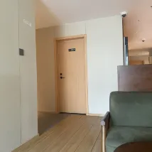 L'ambiance était agréable, avec des couleurs chaudes partout. La suite trois pièces était entièrement meublée. La chambre avait une fenêtre et le lit était agrémenté d'un rideau, offrant à la fois une atmosphère tamisée et une certaine intimité. La réceptionniste, Jingxi, était également très serviable. J'y retournerai sans hésiter dès que j'en aurai l'occasion.