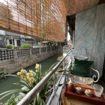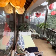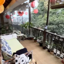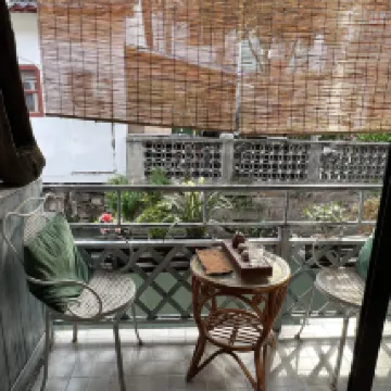 Le propriétaire a fait de gros efforts dans la décoration. C'est antique et dispose d'un immense balcon. C'est très confortable de rester et de ne rien faire. Des collations et des boissons sont également préparées, fortement recommandées !