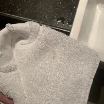 Il y avait des cheveux longs sur le lit, des taches d’huile sur les serviettes et des taches de sang sur les serviettes de bain.