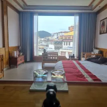 Tout d'abord, l'emplacement de la chambre était fantastique ! Depuis le balcon, je pouvais admirer le monastère de Songzanlin, un paysage magnifique digne d'un tableau. Une sensation incomparable ! De plus, la décoration en bois tibétain authentique de la chambre lui conférait une atmosphère chaleureuse et élégante, comme dans une maison tibétaine.