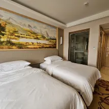 L'hygiène de la chambre et les détails du service sont impeccables, très bien. À cause de la réception, la chambre n'a pas été nettoyée à temps, mais après avoir contacté la réception, ils ont immédiatement organisé le nettoyage et nous ont donné deux boîtes de gâteaux aux haricots mungo. La réception a également envoyé le petit-déjeuner à mon arrivée, mais je ne peux pas faire l'éloge du petit-déjeuner. Il y avait très peu de choses sur la table à chaque fois, et il en manquait souvent. J'ai dû contacter le serveur avant qu'il n'en mette sur la table. J'ai dit qu'il était juste après 20 heures, quand un grand nombre de personnes dînaient, ne pouvaient-ils pas en mettre un peu plus sur la table ? Mais c'est toujours pareil, je ne comprends pas pourquoi, si vous voulez économiser des coûts, vous ne fournissez pas de petit-déjeuner.