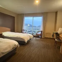 Perfect location. It was a 5-min walk from the bus station and less than 10 min from Roadside rest area. Room was spacious and it faced to the sea. Enjoyed the beautiful sunset from the balcony . Delicious breakfast and dinner. Food of western and Japanese style was provided. Dining area was big.