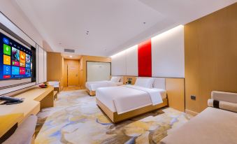 連着定了兩間房,一個大床一個標間。入住很舒服,標間兩個創很大,一米五的寬度。值得入住,以後再來,好評。服務水平可以。很棒。餐飲配不上四星級