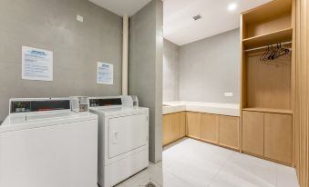 酒店挺乾淨的,一樓有充電寶出租和外賣機器人送餐,房間佈局也不錯