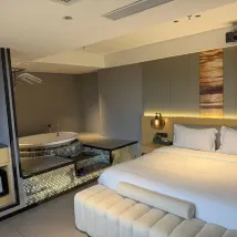 The bathtub was amazing, however the design of the washroom is weird and the resolution of the projector is horrible.