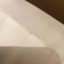 Une serviette était tachée, et une autre était trouée, car il y avait un (petit) trou dans les draps.