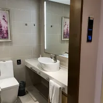 We really enjoyed our stay. The rate is excellent for a hotel of this quality. The staff is nice and friendly. The hotel is spotlessly clean. The location is very convenient, only 5 minutes walk to the Jingtian metro station. There is also a free laundry room. The hotel’s spa offers a discount for hotel guests. We were able to enjoy a nice massage there for an affordable price.