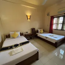 La maison d'hôtes est située dans un emplacement idéal pour ceux qui voyagent pour visiter Angkor Wat. Le personnel est sympathique, le petit déjeuner est préparé rapidement jusqu'à 10h30 (nous avons pris des œufs brouillés). À notre avis, l'hôtel a besoin d'être rénové. Mais dans l'ensemble, pour son prix, tout va bien.
