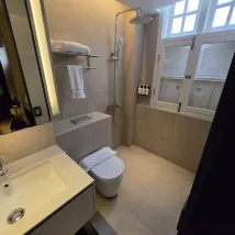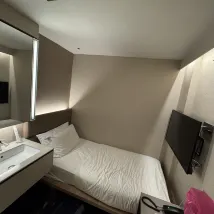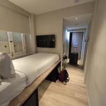Même si la chambre est petite, vous ne vous sentirez pas mal à l'aise. La salle de bain est spacieuse. Tout est fonctionnel. Je suis surpris que l'hôtel gère si bien l'espace. On entend un peu de bruit quand quelqu'un sort, peut-être parce qu'on a la tête trop près du couloir.
