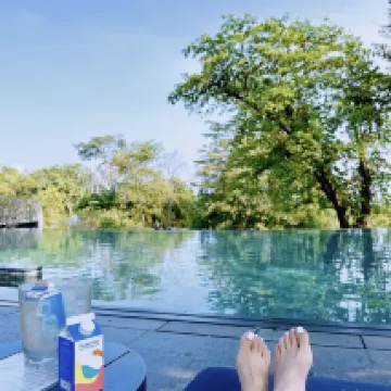 J'y ai passé trois jours. Le service est très attentionné et l'environnement est magnifique. Le petit déjeuner est servi sous forme de buffet de 7h à 11h30. Le jus d'orange est délicieux. Je rencontre des paons tous les matins. est très mignon. Il y a de nombreuses boissons gazeuses gratuites dans le minibar tous les jours.