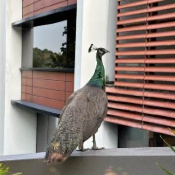 Quand je me suis réveillé au bord de la piscine et que j'ai trouvé un paon à côté de moi, j'ai été à la fois effrayé et surpris.