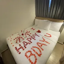 Le personnel de service de l'hôtel est très gentil et même les simples décorations d'anniversaire ont été terminées. Bien qu'il soit loin de la station de métro, il est toujours très proche de Bugis et il y a de nombreux plats délicieux à l'extérieur.