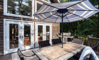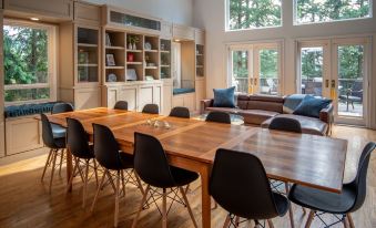 Helikew House is made for quality time with family and friends. From the great room's big windows and 20 ft ceilings to our dining table big enough for 12. The kitchen is well appointed and the hot tub is chemical free. Cozy up around the fire table in the summer or the fire place in the winter. The house is 8 min away from the 7 min ferry and a 5 min walk to 2 private neighborhood beaches. Guemes is everything you love about the San Juans without any of the hassle. We can't wait to welcome you.About pets:No pets allowed.About checkOut:Check out before 11:00 AM.About children:Children allowed: ages 0-17.About checkIn:Check in after 5:00 PM.About smoking:Smoking is not permitted.About minBookingAge:Minimum age to rent: 21.About events:Events allowed: family gatherings, birthday parties, weddings.Maximum event attendees: 25.