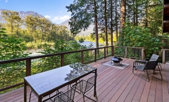 We loved staying here on our first night of our trip ! My husband and I are here for our 1st anniversary and had a wonderful night here enjoying the beautiful river and Mountain View from the back deck. The place was extremely clean and easy to access. Very impressed and would come again :)
