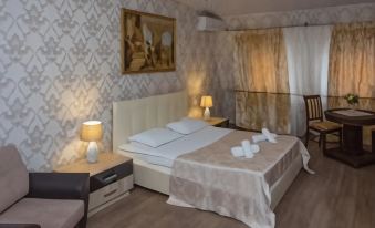 There are 23 rooms at guests' disposal. The interior is decorated in a classic style and bright colors, which allows guests to feel a cozy atmosphere when placing. All rooms are equipped with necessary furniture and appliances. The bathroom is equipped with everything you need. The windows offer a picturesque view of the city.