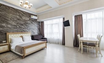 The interior of the hotel is decorated in bright colors and has an exquisite design. Comfortable accommodation in rooms of various categories from standard to apartments with kitchen and necessary appliances. Each room has everything for a long stay, rest and work: free high-speed Wi-Fi, cable TV (LCD TV), air conditioning, mini fridge, luxurious and comfortable sleeping area, bathroom with shower, hairdryer, toiletries and a set of towels. Some rooms are equipped with a fully equipped kitchen area.