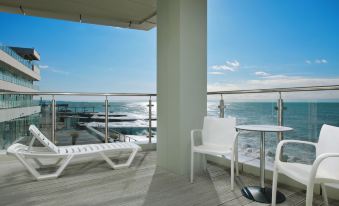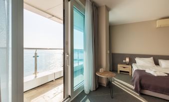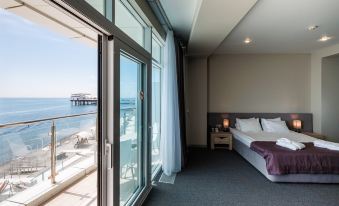 В первую очередь, конечно, отель заслуживает внимания за вид, шум прибоя. Мы заселялись в стандарт, потом переехали в апартаменты. Очень понравился уютный 2-комнатный номер. Отдыхали с 2 детьми, нам предоставили кроватку, помимо раскладного дивана. Большим плюсом к номеру были 2 балкона - один поменьше, второй просторный - ч шезлонгами, столиком и креслами. Убирали номер ежедневно, качественно.