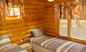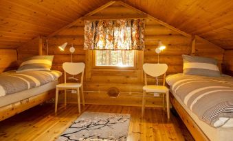 Cabin is built in 2002 and renovated in 2019. Living room/kitchen, two bedrooms, both with two beds, two beds in the loft, sauna, washroom, separate WC and terrace.