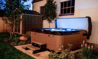 The Shelly House is a private home with all of the perks and pleasures for you to retreat, relax, reset and revive yourself, providing all the pleasures, The mesmerizing backyard lounge features a pergola with couches and hanging chair, a huge gas fire pit and a hot tub. Don't forget the BBQ! Don't want to go out? It's all there, four Sonos speakers, tons of streaming services, two built-in desks.