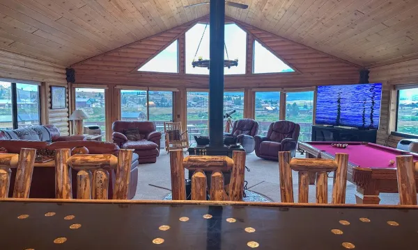 • 4,000 sq. ft. cabin with multiple gathering areas