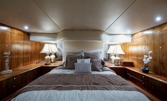 There are two other bedrooms with twin bunk beds which is unique because most smaller boats have very small bunk beds an adult coil not fit these are twin size and very comfortable. Also with bath and shower each.