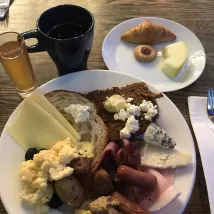 Le lendemain matin, j'étais impatiente de commencer le petit-déjeuner car je devais prendre un train tôt. Ils m'ont préparé un petit-déjeuner, ce qui était super.
