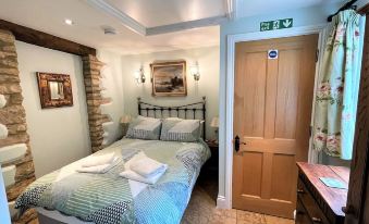 The two twin bedded rooms also overlook the garden. They have a Victorian feel to them with original cast iron fireplaces, dark wood floors and dark oak furniture. The small single room looks to the side over a small fire station (very quiet and little used!) and has oak furniture and a small bay window.