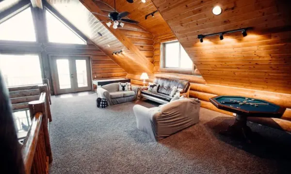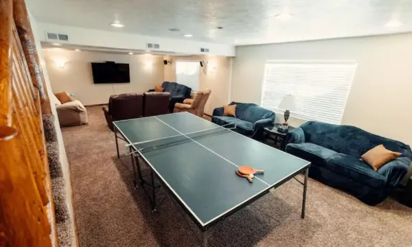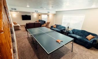 The lodge inlcudes top-of-the-line amenities such as granite counter tops, hardwood floor, premium bedding, and rustic decor. Kitchen is fully equipped and has dishwasher, microwave, cooking & eating utensils, crockery, baking essentials, toaster, coffeemaker, blender, griddle, and outdoor BBQ grill (propane included). There is also an amazon echo to enjoy music with surround sound speakers throughout the home. The main floor is open with a great room, dining area, mud room, kitchen, 2 bedrooms and a full bath. Upstairs, there is a game loft with a futon, bumper pool table, air hockey, seating area, and private balcony. There are also two bedrooms and a full bath. Downstairs there is one bedroom and a half bath, movie room with large TV, ping pong, hookey ring toss, and laundry. The three living areas make up almost 4,000 sqft and are all large enough for everyone to gather.
