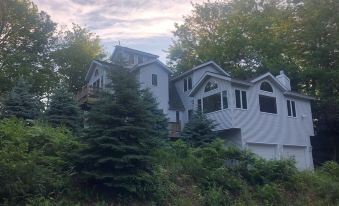 Enjoy your vacation or a family get together in this spacious 4 bedroom 3 bath with the second story as your master bedroom with an office/sitting room and a widows watch on the 4th floor to enjoy coffee in the mornings and see lake views. The home has AC for those warm summer days and nights. The walkout basement has a gas fireplace to relax, enjoy tv and warm up while looking outside at the beautiful woods.