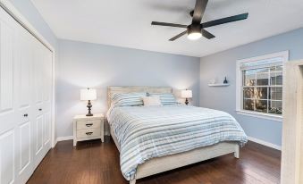 Enjoy backyard fun with a propane grill (propane and utensils included) and a shaded outdoor seating area. Stay connected with ultra-fast WiFi and stream your favorite shows on smart TVs in both bedrooms, including access to YouTube TV. The laundry room is equipped with a washer, dryer, and detergent, and beach towels are provided.