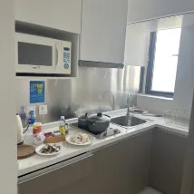 La chambre est une suite avec un salon et une cuisine. La cuisine est entièrement équipée avec des casseroles, de la vaisselle, etc. Vous vous sentirez comme chez vous après l'enregistrement. La pièce a une large vue, surtout la nuit, vous pouvez voir les magnifiques paysages du centre de Suzhou. De plus, le service de chambre est très bon. Si vous appelez et avez besoin de fournitures supplémentaires, elles seront immédiatement livrées à votre porte. Le petit déjeuner est également très copieux. Je reviendrai certainement la prochaine fois.