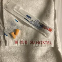 Des serviettes de bain, des brosses à dents et des bouchons d'oreilles sont fournis.