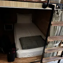J'adore cette auberge, même si, selon ce que vous faites à Taipei, ce n'est peut-être pas aussi pratique que de rester près de la rue principale de Taipei, mais comme c'était ma dernière nuit, je connaissais mon chemin. Lits ÉNORMES et style capsule. Tellement d'espace pour déballer et se préparer. Je déteste que les toilettes que vous deviez passer par le bureau principal soient un peu embrassantes quand vous avez ce pipi à 3 heures du matin, la réception est ouverte 24h / 24 et 7j / 7, donc c'est bien que quelqu'un soit disponible. Le Wi-Fi est bon. Le petit déjeuner n'était pas le meilleur mais appréciez qu'il soit inclus. dans l'ensemble, je recommanderais à des amis!